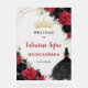 Personalisieren Sie dieses hübsche Blumenschild Quinceañera / Sweet 16 Geburtstag Begrüßung Acrylzeichen einfach und schnell. Klicken Sie einfach auf die Schaltfläche Bearbeiten mithilfe von Entwurfswerkzeugen, um den Schriftart weiter zu bearbeiten, Stil, Größe und Farbe zu ändern. Mit einem Mädchen gekleidet in einem herrlichen schwarzen Kleid, schicken schwarzen und roten Blume und einer goldenen Prinzessin-Krone. Entdecken Sie die in unserem Shop erhältlichen Gegenstände, um ein zusammenhängendes und stilvolles Fest zu schaffen! c) Somerset Fine Paperie von The Happy Cat Studio.