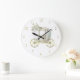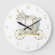 Eine niedliche Uhr in den Gold- und Perlenfarben. Goldzahlen, in der Mitte ist- ein schöner Wagen und eine Krone