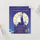 Prinzessin Royal Birthday Party Einladung mit einem Schloss und Mond mit Uhr Gesicht im Mond.