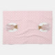 16" x 24" TwillbaumwollGeschirrtuch 100% mit einem Bild, an beiden Enden, von Priscilla, ein brauner knuddeliger Teddybär kleidete in einem schönen Rosa an und Gold kräuselte Kleid, in einem weißen Oval mit einer rosa Grenze auf einem Hintergrund der weißen Tupfen auf Rosa. Fertigen Sie für ein großes Babypartygeschenk besonders an. See zusammenpassende Stoffserviette, Papiercocktailserviette, Stoff-Tischset, PapierTischset und Untersetzer. Sehen Sie die gesamten EckGeschirrtuchsammlung der Kinder im FOOD/BEV | Leinenabschnitt.