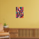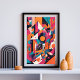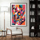 Eine energetische Explosion von gewagten geometrischen Formen und lebhaften Farben. Dieses abstrakte Stück spielt mit Schichten, Linien und Symmetrie, um ein dynamisches Gefühl von Rhythmus und Bewegung zu schaffen. Helle Farbtöne von Magenta, aquamarin, orange und schwarz kollidieren in einer urbanen und digitalen Ästhetik, die die visuelle Sprache der Moderne und Innovation hervorruft.