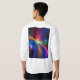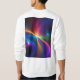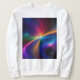 Gekurbelt gefärbtes Licht, das von einem zentralen, hellen weißen Punkt inmitten verstreuter Sterne flammt. Das gleiche Bild wurde horizontal auf der Rückseite gedreht. KI erzeugt.