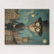 Dieses Rätsel, in digitaler Illustration, verfügt über einen Detektiv mit einem formalen Kleid und Zylinder Hut. Dies ist ein großes Rätsel für diejenigen, die nicht-klassische Rätsel, die Illustrationen von Gebäude oder Landschaften haben Liebe.