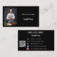 Ein klassischer schwarzer Hintergrund. Personalisieren Sie Foto, Titel, Firmenname/Name und Text auf der Vorderseite und fügen Sie diese hinzu. Weißer Text. Zurück: Vorlagen für Ihren Namen, Titel, Telefonnummer, E-Mail- und Website-Adresse, Ihren eigenen QR-Code für Ihre Website oder Ihr Social-Media-Konto. Facebook und Instagram Icons/account.