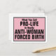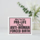 Pro-Life ist eine weibliche Zwangsgeburt Postkarte