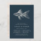 Unsere schicken Küsten-Proben-Dinner-Einladungen bieten eine Vintag geätzte Fischillustrierung in cremiger weißer Farbe auf marineblau Hintergrund. Personalisieren Sie Ihre Hochzeitsfeier mit Probe und Abendessen oder Feiern Details unten.