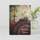 Wir laden Sie zu einem Party ein, das die Braut und den Bräutigam mit der ländlichen und rustikalen Braut auf dem Traktor Country Farm Hochzeit Probe Dinner Einladung ehrt. Dieses bezaubernde Probe-Dinner im Ranch-Stil lädt zu einem malerischen, digital verbesserten Bauernfoto einer Braut mit einem Elfenbein-Hochzeitskleid, Brautschleier und braunen Western Cowboystiefel mit einem Strauß gelber Gänseblümchen auf einem alten antiken roten Traktor auf der Weide ein. Perfekte Inspiration für ein lässiges Party-Fest.