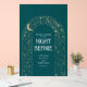 Genießen Sie Ihr Probe-Dinner mit einem eleganten, aquamarinen und goldenen Willkommensschild mit Mond, Sternen, Planet und Schießstar.