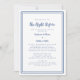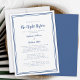 "The Night Before", schlicht und trendig in Blau und Weiß gehalten, lädt das zeitgenössische minimalistische Design mit einem doppelten Rahmen in klassisch-blau auf einem knackigen, weißen Hintergrund zum Probe ein. Personalisieren Sie das Hochzeitsdesign mit Ihren Details in trendiger Schrift und Schrift in blau. Der Rücken passt gut zusammen und ist fest in Farbe. Ersetzen Sie die Vorlagendetails durch Ihre eigenen Angaben, die den Abstand zwischen den Absätzen wie im Beispiel verlasse, und verwenden Sie alle Kleinbuchstaben, sofern angegeben. E-Mail invitationsuites@gmail.com mit Fragen oder benutzerdefinierten Farbanfragen.