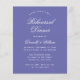 Eine einfache Probe-Dinner-Einladung mit einer modernen Farbe, eine violette Nuance, die in der Farbe des Jahres 2022 benannt wurde. Es hat nur weißen Text auf violettem Hintergrund. Die Wörter "Probe Dinner" und der Name sind in einem eleganten Kalligraphieskript geschrieben.