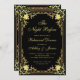 Dieses elegante Dinner in Schwarz und Gold mit Vintager Probe bietet ein verziertes Imitat mit goldfarbenem Rahmen und eleganten barocken goldenen Dekorationen auf schwarzem Hintergrund. Alle Texte können personalisiert sein und haben eine goldgelbe Farbe, die dem goldenen Rahmen des Imitats ähnelt. Der Vintage, verzierte Rahmen basiert auf einer antiken französischen Buchbinderei von Georges Mercier (1885-1939) - Madame de Maupin von Theophile Gautier, Ausgabe 1911, jetzt öffentlich zugänglich.