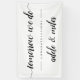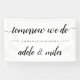 Elegantes Bannerdesign ist der ideale Ort, um Ihre Probe am Abend vor Ihrer Hochzeit zu genießen. Einfache schwarz-weiße Designmerkmale "morgen machen wir" in knackiger schwarzer Kalligrafie-Schrift. Personalisieren Sie die Namen des Paares unten.