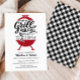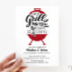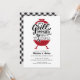 Senden Sie Ihren Gästen dieses moderne und lustige "Grill and Chill" Probe Dinner für ein lässiges Kochabend oder eine Verlobungsfeier! Das Design ist mit einer klassischen Grillillustrierung mit individueller Typografie ausgestattet, um die Feier für das glückliche Paar zu unterstreichen! Auf der Rückseite der Einladung befindet sich ein schwarz karierter Gingham mit Platz für weitere Informationen.