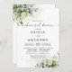 Probe im Grünen Einladung. Dieses stilvolle und elegante Hotel bietet eine wunderschöne, handbemalte Aquarellgarage. Finden Sie passende Artikel in der Grüne Eukalyptus Floral Collection.