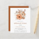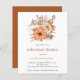 Herbst Florals Probe Abendessen Einladung. Eine preisgünstige SMALLER 4.5" x 5.6" Alternative. Erhältlich in einem SEMI GLOSS 110lb CARD STOCK oder einem SATIN FINISH 80lb THINNER PAPIERSTOCK. Umschläge sind optional. Ein Bouquet mit wunderschönen braunen und cremefarbenen Aquarellblumen und Blättern steht oben und eine stilvolle Typografie liegt darunter, die leicht zu den Details Ihres Probe Dinner personalisiert ist. Auf der Rückseite ist ein farbiger Hintergrund mit Koordinaten.