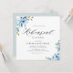 Ein Blumendesign in Aquarellfarben mit hellblauen Rose, schwarzem Drehbuch und staubblauer Rückenfarbe. Die Farbe und der Text können nach Ihrem Hochzeitstil bearbeitet werden. Sie können die Textgröße, den Schriftart und die Position ändern.