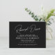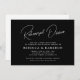 Diese Einladung zum Hochzeitsessen Probe bietet eleganten Text auf schwarzem Hintergrund.