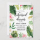 Eine lustige und skurrile Probe-Dinner-Einladung mit Aquarell-Hibiskus, Palmen-Blätter, Bananen-Blätter und anderen tropischen Akzenten. Diese individuelle Einladung eignet sich perfekt für das sommerliche Probe-Dinner.