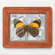 Ein Trompe l'oeil-Look aus einem Probenkasten mit Satinfutter. Ein schöner Schmetterling sitzt unter dem Glas.