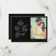 Manchmal ändern sich die Dinge. Aktualisieren Sie Ihre Hochzeitsgäste mit Ihrem neuen Hochzeitstag mit unserer modernen Save the Date-Karte. Das Design zeichnet sich durch eine einfache und moderne Anordnung aus, die in der modernen Kalligraphie "Let's try this again" dargestellt ist. Einfach schwarzer Hintergrund mit dem Namen des Paares und dem Hochzeitstag, Ort und Foto.