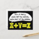 Unsere kleinen Mathematikfiguren sorgen für einen albernen Wortschatz. Genießen Sie X Y und Z auf dieser lustigen Problem Postkarte.