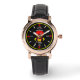 Uhr, Klassische Damenuhr mit schwarzen Lederarmband