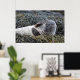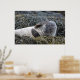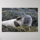 Siegel im Hafen, das auf einem Algenbett liegt und einen Juckreiz kratzt.