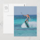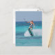 Kitesurfer heben aus dem tropischen Meer Wasser.
