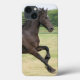 Herrliches galoppierendes Friesiepferd auf einem großen Feld.