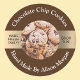 DIY-Produktetikett für Cookie- oder Dessertverpackung mit Name, Foto/Logo mit schwarz-weißem Text und goldfarbenem Streifen auf braunem Hintergrund.