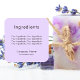Ein violetter, lavenderfarbener Hintergrund, schwarzer Text. Personalisieren und fügen Sie eine Überschrift, Ihre Produktinformationen, Ihren Firmennamen und Ihre Kontaktinformationen hinzu.