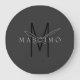 Professional Black Monogram Gray Your Name Große Wanduhr