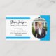 Make a memorable impression with this modern blue photo real estate agent business card. Featuring a clean white background with vibrant blue accents, this card elegantly showcases your professional photograph and essential contact details. The stylish script font for your name adds a touch of sophistication, while the clear layout ensures all information is easily readable. This design is perfect for real estate professionals who want to convey trust, approachability, and a keen eye for modern aesthetics. Impress potential clients with a business card that truly reflects your brand and dedication to service in the property market.