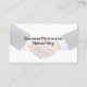 Business cards for a professional business networking consultant and concierge designed with a graphic of two hands greeting shaking lightly printed in the background.