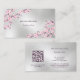 This professional business card features pink cherry blossom branches on a faux silver foil background and elegant modern minimalist fonts. Fitting for makeup artists, spa, landscaping, wedding planners, event planners, cosmetologists, beauty salon...