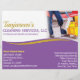 Boost publicity with these professional flyers (template) for house cleaning, housekeeping or janitor (janitorial) small business. These flyers are designed with purple text and a gold (falsch) glitter color on the side with purple on the back. Customize the flyers by adding or removing elemente to suit your company's brand.