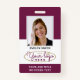 Create a professional appearance with this stylish identification badge. A simple template personalized with your ID photo, name, job title, and company logo. Return details are on the back, along with additional information, and a QR code. All the text can be customized to suit your business needs. This versatile design would suit many different workplaces including corporate professionals, business consultants, retail workers, medical staff and more. Printed colors: purple-pink plum, black and white.