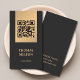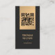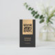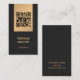 Elegant customizable business card template with dark grey background and faux golden stripes. Professional elegant networking card with QR code. Perfect for consultants and more.