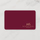 Elegant Ruby Red Gold Text Modern Professional Monogram Initial Oceania / Ocean / Australian / Japan / Japanese Size Luxury Signature UV Gloss Rounded Corner Business Cards. Perfect for Real Estate Agents, Accountants, Realtors, Brokers, Attorneys, Lawyers, Corporate Professionals, Stylists, Architects, Engineers, Directors, Managers, Consultants, Designers, Teachers, Musicians, all professions.