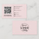 Modern QR Code custom logo and custom social media icons business card template. Template in a modern minimalist style on a blush pink background with simple text font style in black color and with your Website QR Code. The versatile template can easily be updated with your company logo, name, title, address, phone, email and social media usernames (for Instagram and Facebook) and QR Code. The icons can easily be replaced with the one you want or an added extra to make a truly bespoke professional design for your own business! When you personalise the template choose from the template layer the icons (twitter, pinterest, tiktok, snapchat, linkedin, youtube,) you want and make visible on your business card by clicking on them and remove or make invisible the icons you don't need on your business card.