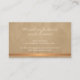 Modern trendy glamorous gold copper metal and beige leather (PRINTED, NOT REAL LEATHER) elegant script signature calligraphy professional business card with an exclusive glam luxury touch. ++++++++++ Suitable for fashion, boutique owner, personal stylist, interior designer, salon manager, makeup artist and other creative professions.