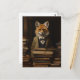 Das Bild zeigt einen anthropomorphen Fuchs, der in formaler Kleidung gekleidet ist und hinter einem Schreibtisch sitzt, der von großen Stapel alter Bücher umgeben ist. Der Fuchs trägt eine klassische olivgrüne Anzug-Jacke, ein knuspriges weißes Shirt, eine gemusterte Weste und eine ordentlich gefesselte schwarze Bug-Krawatte. Sein Ausdruck ist ruhig, aber scharf, mit intelligenten Augen, die tiefes Wissen und Neugier suggerieren. Das Ambiente ist leicht beleuchtet, das warme, goldene Licht fällt sanft über die Szene, und erinnert an die Atmosphäre einer alten Bibliothek oder ein Studium. Die abgenutzten Bücher tragen zum Gefühl von Geschichte und Weisheit bei, als wäre der Fuchs ein Gelehrter oder Professor, der in lebenslanges Lernen vertieft ist.