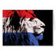 Schlafendes Löwenprofil mit roten, weißen und blauen Farben auf schwarzem Hintergrund.