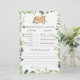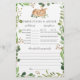 Deer themed Baby Dusche Vorhersagen und Ratschläge Spielkarte bietet eine Aquarellbilder Hirsche und Aquarell Grüne eucalyptus Garland und eleganten handgeschriebenen Stil Schriftart.