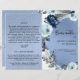 Elegante programa de quinceañera con hermoso arreglo floral en acuearela en varios tonos de azúl y detalles en imitación de Aluminio azul. Uso de elegante caligrafía moderna. Nuestro texto es solo un ejemplo, ya que puedes agregar cualquier información o mensaje que prefieras. Puedes hacer agereches de tamaño de texto, color y estilo seleccionando "seguir personalizando". NOTA: Este programa es enviado plano y REQUIERE QUE LO DOBLE MANUALMENTE en casa. Se recomienda el tipo de papel seleccionado por krankñador. Invitación que Coordina disponible. Este mismo programa esta disponible también en Inglés. Parte de nuestra colección "Elegant Blue Watercolor Floral Quinceañera", con variedad de productos para corar disponibles.