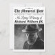 Ehre deinen Lieben mit diesem maßgeschneiderten Begräbnisprogramm, das in einem sinnvollen Zeitungsstil entworfen wurde. Mit Platz für ein Portrait, einen Text für den Text und eine Erinnerungen, die in Liebe gehalten wird, schafft diese Karte eine herzliche Hommage in einem klassischen, Vintag inspirierten Layout. Einfach mit eigenen Worten und Fotos personalisieren.