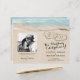 Elegante Karten für die Hochzeit in Urlaubsort am Strand mit einem sommerlichen Hintergrund tropischer Strandinseln, einem Vintagen Sandstrand mit zwei Herzen am Ufer, Ihren Initialen und einer leicht zu personalisierenden Hochzeitsvorlage.BITTE BEACHTEN SIE: Diese sind ein Stück Qualitätspapier, das Sie selbst zusammenfalten müssen.