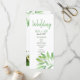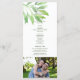 Einfaches, modernes Hochzeitsprogramm in Aquarellfarben, botanisch, weiß und grün, mit individuellem Foto des Ehepaares auf der Rückseite. Einzigartiges Design mit Umweltbewusstsein und zeitgemäßer Eleganz.