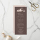 Dieses klare Hochzeitsprogramm in den Bergen ist perfekt für eine rustikale Hochzeit. Das Design besticht durch einen idyllischen, beigefarbenen Berg in Aquarelltönen.
