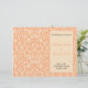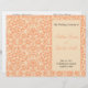 Machen Sie diese Reihenfolge des Dienstes und das Hochzeitsprogramm als eine Höflichkeit für Ihre Gäste und ein Muss Ihrer Hochzeitsfeier. Dieses Hochzeitsprogramm zeichnet sich durch ein pfirsichfarbenes und cremefarbenes Damastmuster aus. Sie können das Beispiel der Hochzeitsfeier oder schreiben Sie Ihre eigene. Der gesamte Text kann von der Produktseite aus leicht angepasst werden. Dieses preisgünstige Hochzeitsprogramm kommt als flache Seite an, die Sie dann in der Hälfte zusammenfalten, um das Programm zu vervollständigen. Wir bieten auch ein vorgefaltetes Hochzeitsfeierprogramm an. Vergewissern Sie sich, dass Sie die anderen feinen Produkte in unserem Karo auskosten
